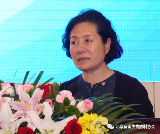 出席大會的領導北京市衛生健康委一級巡視員李彥梅,中國衛生有害生物防制協會副會長、原全國愛衛辦副主任白呼群,北京健康教育協會會長、原北京市衛生健康委副巡視員、市愛衛辦主任劉澤軍和中國衛生有害生物防制協會專家委員會主任委員、軍事醫學科學院軍事醫學研究院研究員趙彤言上臺致辭。李彥梅巡視員代表北京市衛生健康委鐘東波書記、劉俊彩主任充分肯定了協會既往工作,并希望協會新一屆理事會繼續秉承既往協會的優良傳統,在新形勢、新歷史背景下,勵精圖治,勇于創新,繼往開來,守初心,擔使命,為不斷提升我市人民群眾的健康和福祉做出更大的貢獻。