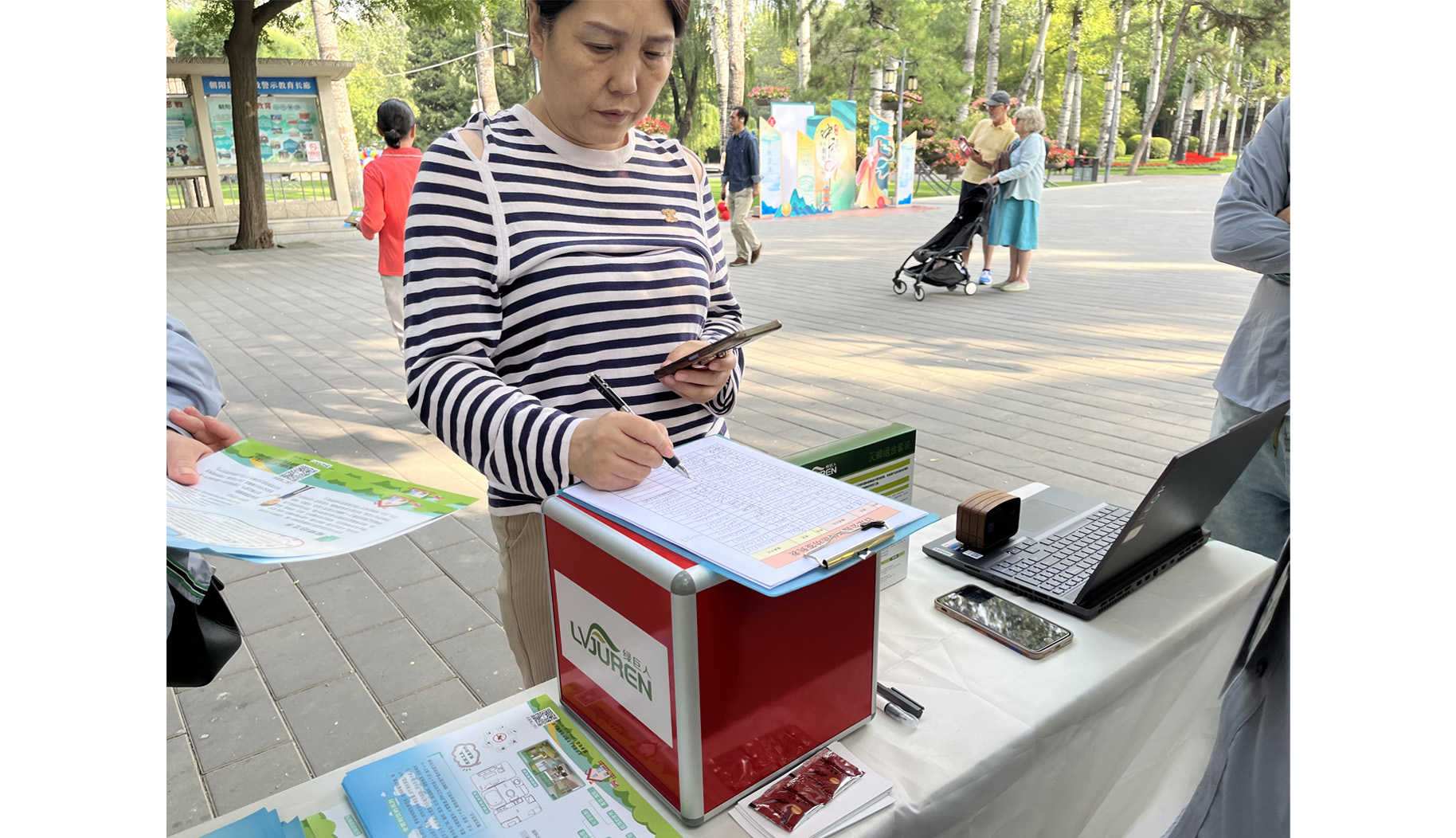 為了增添社區(qū)居民的日常生活樂趣,促進(jìn)健康的生活方式,并營造歡快的氛圍,在日壇公園和馬南里社區(qū)的宣傳活動中,北京綠巨人采用了不同形式的抽獎環(huán)節(jié)。在日壇公園的活動中,我們設(shè)置了一個(gè)抽獎箱,居民們可以參與抽獎,增加了互動性和期待感;而在馬南里社區(qū)的活動中,我們使用了大轉(zhuǎn)盤抽獎的方式,讓居民們可以旋轉(zhuǎn)轉(zhuǎn)盤,以獲取獎品。這兩種抽獎形式都受到了居民的認(rèn)可和喜愛,我們也看到了許多滿意的笑容在活動現(xiàn)場出現(xiàn)。
